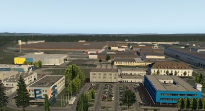 - Photorealistische Gebäude in der Umgebung des Heli-Ports